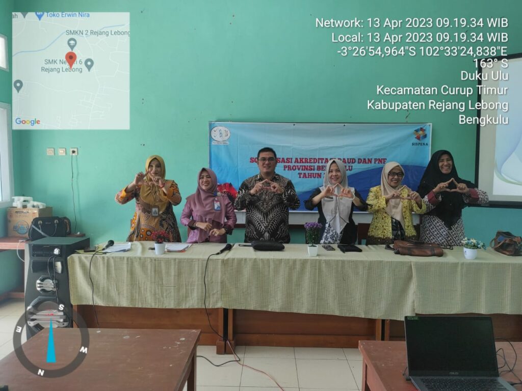 Kegiatan Sosialisasi Akreditasi yang diselenggarakan oleh BAN PAUD dan PNF Provinsi Bengkulu melalui bidang Pembinaan PAUD dan PNF Dinas Pendidikan dan Kebudayaan Kabupaten Rejang Lebong pada hari Kamis tanggal 13 April 2023 bertempat di ruang SPNF-SKB Rejang Lebong. Kegiatan ini juga dihadiri oleh Kepala Dinas Pendidikan dan Kebudayaan Kabupaten Rejang Lebong REZZA PAKHLEVIE,SH, Kabid Pembinaan PAUD dan PNF SRI SULASTRI, SE, para Kasi dibidang PAUD , Penilik dan Pengawas TK/PAUD serta Asesor.