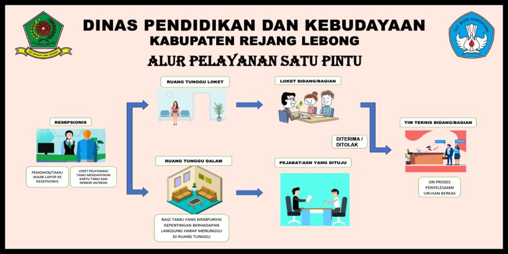 Pada saat ini Dinas Pendidikan dan Kebudayaan Kab. Rejang Lebong telah menggunakan pelayanan satu pintu yang dimaksudkan untuk memberikan pelayanan yang terintegrasi dalam satu kesatuan proses dimulai dari tahap awal sampai dengan tahap penyelesaian produk pelayanan Dinas Pendidikan dan Kebudayaan melalui satu pintu,